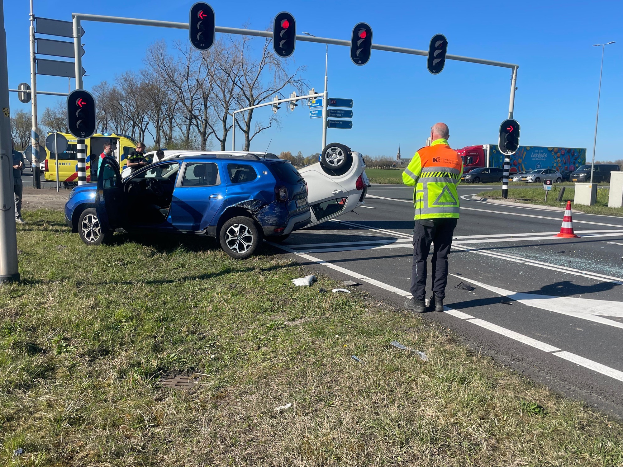 Een bestuurder was door de aanrijding met de auto over de kop geslagen. Alle inzittenden van beide voertuigen zijn door het ambulancepersoneel onderzocht. Wonder boven wonder waren er geen gewonden. De auto’s zijn door een bergingsbedrijf afgevoerd.