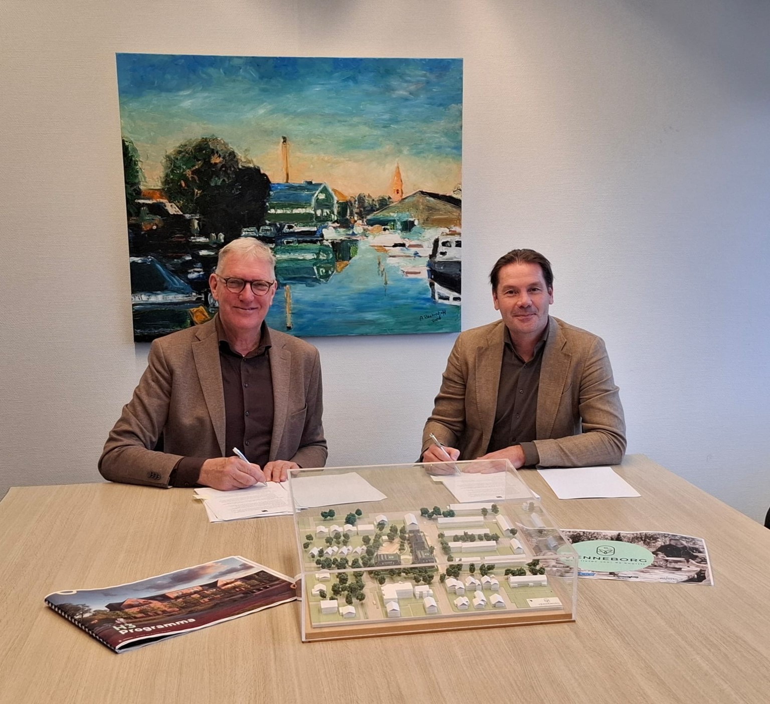 UITGEEST – Aan de rand van Uitgeest in de wijk De Koog verrijst iets moois. Hier krijgt de locatie De Vrijburg een nieuwe bestemming als Venneborg, een groen en veilig woon- en verblijfsgebied tussen de weilanden en het historische centrum. Op 19 december tekenden wethouder Jan Schouten en Dobias Bloem, directeur van SBB Ontwikkelen en Bouwen, de koop- en realisatieovereenkomst.