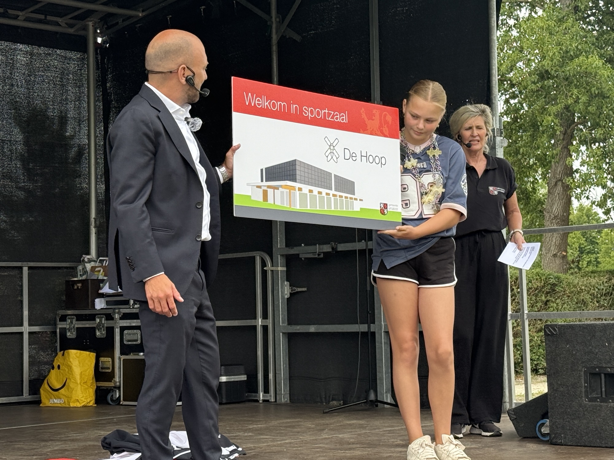 UITGEEST – Zaterdagmiddag 14 juni was het zo ver. Onder grote belangstelling werd het vernieuwde dorpspark en sportzaal officieel geopend. Wethouder Oud en kinderburgemeester Vajen verrichtte de officiële bekend making van de naam van de nieuw sportzaal “De Hoop”.