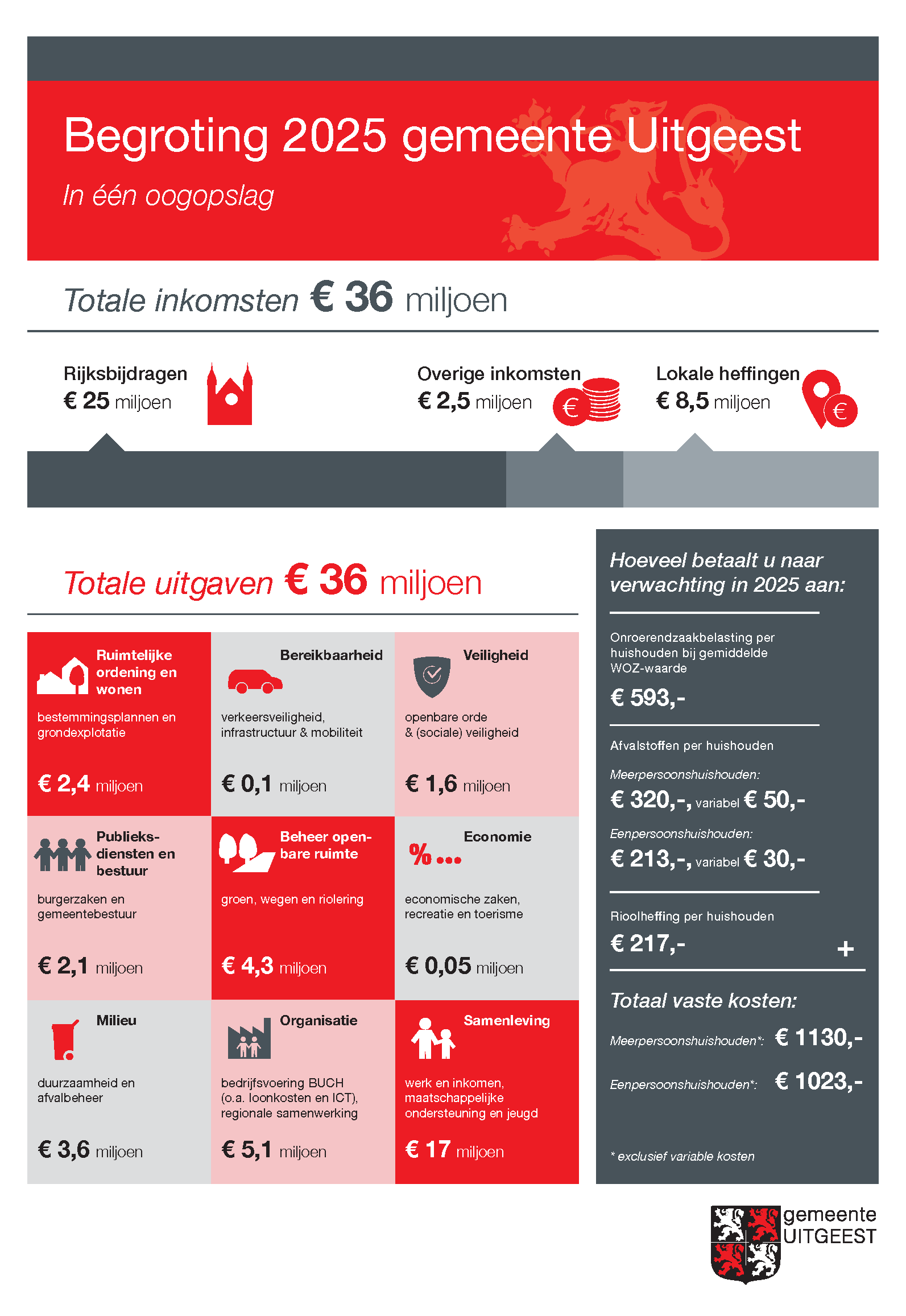 UITGEEST – De gemeenteraad van Uitgeest heeft op donderdagavond 7 november de begroting voor 2025 vastgesteld. Daarmee is duidelijk waar de gemeente het komende jaar geld aan uitgeeft. De begroting voor 2025 is sluitend. Dat betekent dat inkomsten en kosten voor 2025 in balans zijn.