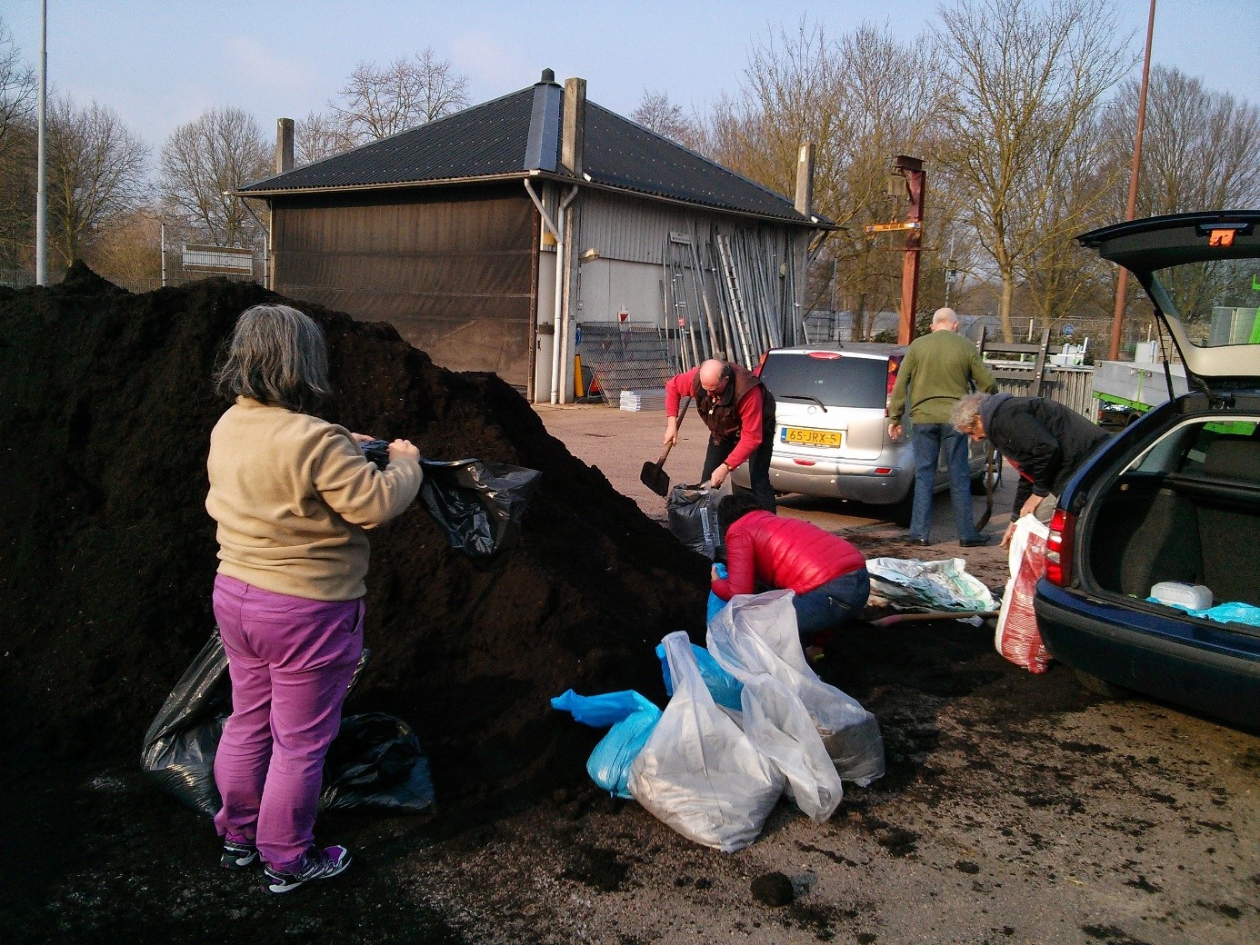 Neem zelf een zak en schep mee. Komt u met een aanhanger? Denk eraan om de aanhanger goed af te dekken met een zeil of net, anders riskeert u een boete. We hebben één lading compost, dus op=op.