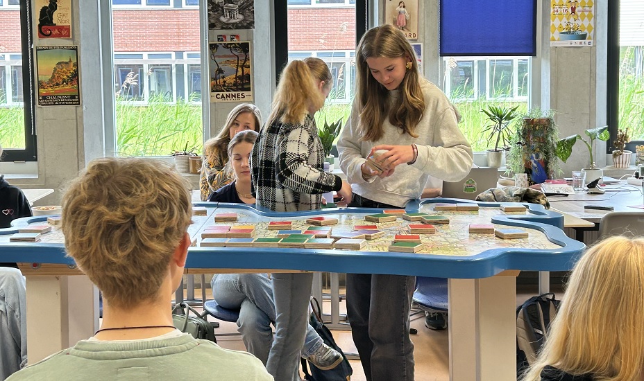 Foto: Scholieren van het Bonhoeffer College in Castricum puzzelen met de ruimte in Noord-Holland (Aangeleverd Provincie NH)