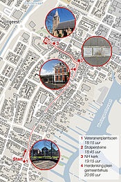 Op de plattegrond ziet u de route en de locaties waar de herdenking plaatsvindt.